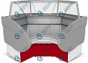 Холодильные витрины Марихолодмаш оснащены гнутыми фронтальными стеклами, шторками из поликарбоната, угол внутренний ВХС-УВ Илеть имеет охлаждаемый закрытый объем (запасник) для кратковременного хранения товарного запаса. Исполнение витрин на ножках, с лицевыми панелями (щитками), декорирующими нижнюю часть. Глубина фронтальной выкладки товара (ширина загрузки) 790 мм.
