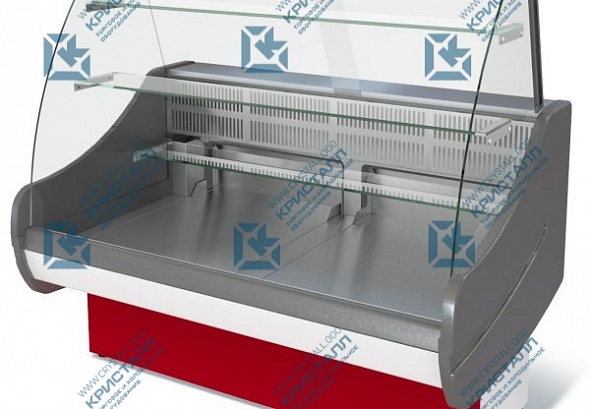 Холодильные витрины оснащены гнутым фронтальным стеклом, двумя стеклянными неохлаждаемыми демонстрационными полками и одной — охлаждаемой, шторками из оргстекла. Исполнение всех витрин на ножках, с лицевыми панелями (щитками), декорирующими нижнюю часть.