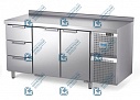 Столы представляют собой модули, в виде столов с охлаждаемой камерой (рабочего объема), и дверцами (ящиками), со стороны обслуживающего персонала. В правой части стола встроен холодильный агрегат. Машинное отделение закрыто декоративными панелями с датчиком температуры охлаждаемого объема. Стол обеспечивает поддержание температуры продуктов, находящихся в охлаждаемом объеме, в пределах от 2°С до 6°С. Все конструктивные элементы столов, контактирующие с продуктами питания выполнены из нержавеющей стали. Столы предназначены для эксплуатации в закрытых помещениях. Конструкция столов продумана таким образом, чтобы легко осуществлять его тщательную санитарную обработку.