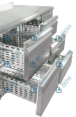 Регулируемые по высоте ножки, автоматические доводчики дверей с фиксатором открытого положения, легкозаменяемые магнитные уплотнители