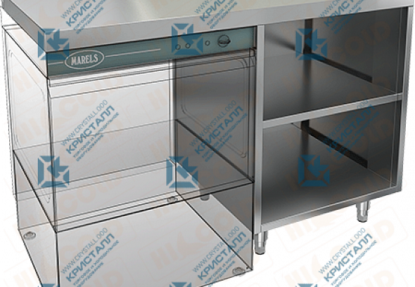 Стол закрытый с трех сторон под посудомоечную машину с полкой, с бортом HICOLD НБМСЗОКП-12/7БЛ