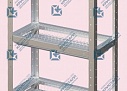 В комплект стеллажа СКТС-Э входят три полки, укомплектованные решетками (кассетами для тарелок) и одна полка для стаканов. Полки выполнены из оцинкованной стали, решетки — из окрашенной стали. Под каждой полкой расположен поддон для стока жидкости. Стойки стеллажа выполнены из оцинкованной стали, представляют собой уголок с фальцованными краями для увеличения жесткости конструкции. Опоры стоек регулируются по высоте в пределах 20мм и изготовлены из нержавеющей стали с пластиковой опорой снизу.