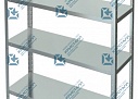 Полки стеллажей изготовлены из нержавейки t=0,5 AISI 430, каркас оцинкованный, стойки-уголок
