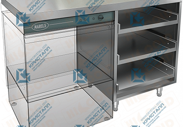 Стол для корзин с бокалами и крылом под посудомойку, с бортом HICOLD НБМКБКП-12/7БЛ