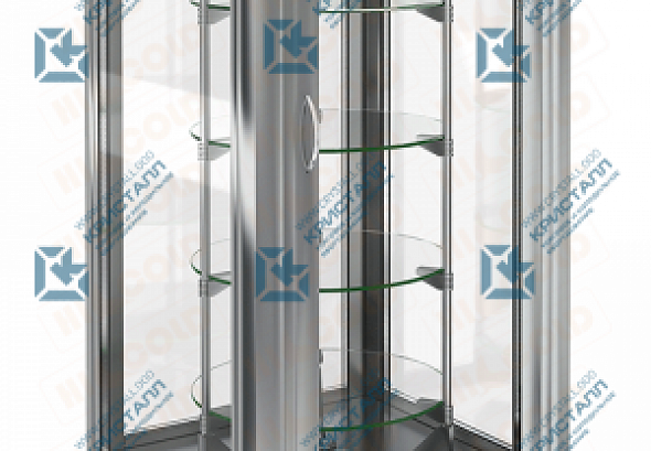 5 вращающихся полок (470мм), подсветка фриза, подсветка внутри витрины, низкие ножки