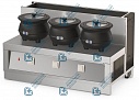 Мармит первых блюд под электросупницы предназначен для установки на него 3 электрических супниц. Оборудован розеткой на 220 В.