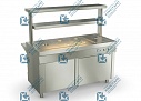 Под каждой гастроемкостью расположен электронагреватель, который поддерживает в горячем виде вторые блюда.
