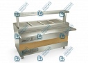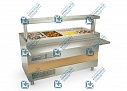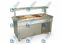 Охлаждаемая ванна позволяет установить в нее 4 гастроемкости GN 1/1-150мм. В комплект поставки входят секционные перемычки для установки гастроемкостей других размеров.