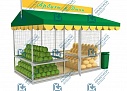 Павильон «Арбузы и Дыни» предназначен для торговли соответствующей продукцией, уложенной в ящики. Каркас павильона, оснащённая наклонными и горизонтальными витринами, сборно-разборный, выполнен из оцинкованной стали. В базовой комплектации павильона: «открытый» — павильон от дождя и солнца сверху павильон защищен тентом.