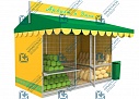 А так же тентом для защиты от осадков и солнечных лучей, продавца и торговой зоны.