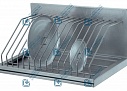 Полка для крышек имеет 15 отделений. Размер ячеек позволяет размещать на полке крышки разных диаметров от min d=16 см до max d=50 см.