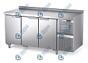 Столы представляют собой модули, в виде столов с охлаждаемой камерой (рабочего объема), и дверцами (ящиками), со стороны обслуживающего персонала. В правой части стола встроен холодильный агрегат. Машинное отделение закрыто декоративными панелями с датчиком температуры охлаждаемого объема. Стол обеспечивает поддержание температуры продуктов, находящихся в охлаждаемом объеме, в пределах от 2°С до 6°С. Все конструктивные элементы столов, контактирующие с продуктами питания выполнены из нержавеющей стали. Столы предназначены для эксплуатации в закрытых помещениях. Конструкция столов продумана таким образом, чтобы легко осуществлять его тщательную санитарную обработку.