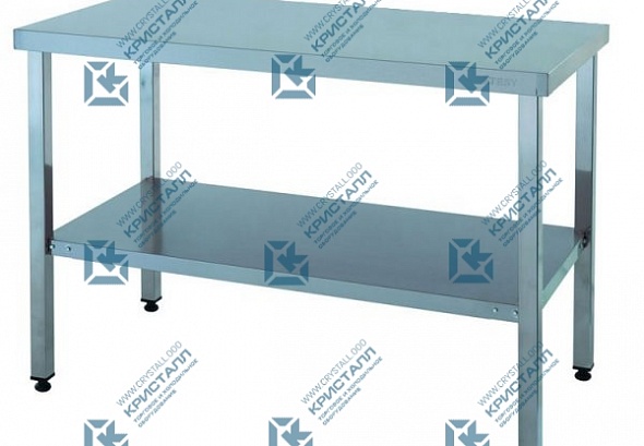 Каркас столов состоит из стоек, выполненных из нержавеющей трубы квадратного сечения 40х40 мм. Стол имеет сплошную полку, также изготовленную из пищевой нержавеющей стали.