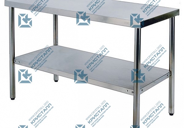 Каркас столов состоит из стоек, выполненных из нержавеющей трубы диаметром 40мм. Стол имеет сплошную полку, также изготовленную из пищевой нержавеющей стали.