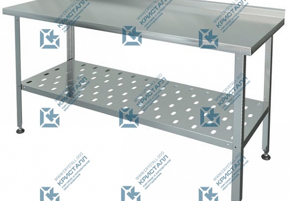 Каркас столов состоит из стоек, выполненных из нержавеющей трубы квадратного сечения 40х40 мм. Стол имеет сплошную полку, также изготовленную из пищевой нержавеющей стали.