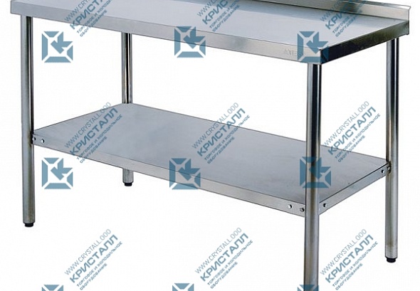 Каркас столов состоит из стоек, выполненных из нержавеющей трубы диаметром 40мм. Стол имеет сплошную полку, также изготовленную из пищевой нержавеющей стали.