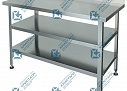 Каркас столов состоит из ножек, выполненных в виде уголка и полки-решетки. Он изготавливается в двух вариантах: из оцинкованной и нержавеющей стали.