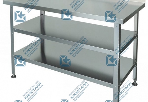 Столешница столов изготовлена из пищевой нержавеющей стали. Она укреплена с внутренней стороны листом ламинированной древесно-стружечной плиты (ДСП), что увеличивает прочность и исключает прогиб столешницы. Ламинирование ДСП обеспечивает защиту его от влаги и предотвращает попадание древесной пыли на продукты питания.