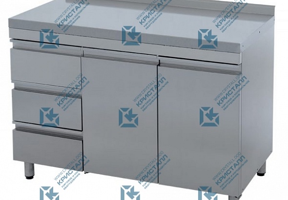 Стол-тумба с ящиками производится в двух вариантах: с бортом (пристенный вариант) СТ-3/1200 и без борта СТ-2/1200 и представляет собой разделочный стол с 3-мя выдвижными ящиками на роликовых направляющих и отделением для хранения посуды.