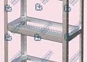 В комплект стеллажа СКТ-Э входят четыре полки, укомплектованные решетками (кассетами для тарелок). Полки выполнены из оцинкованной стали, решетки — из окрашенной стали. Под каждой полкой расположен поддон для стока жидкости. Стойки стеллажа выполнены из оцинкованной стали, представляют собой уголок с фальцованными краями для увеличения жесткости конструкции. Опоры стоек регулируются по высоте в пределах 20мм и изготовлены из нержавеющей стали с пластиковой опрой снизу.