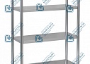 Стеллаж состоит из стоек, изготовленных из круглой трубы Ф40 мм, и четырех полок. Полки и стойки стеллажа выполнены из пищевой нержавеющей стали и могут устанавливаться на разных уровнях.
