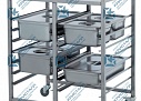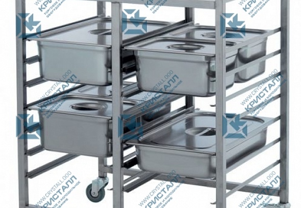 Направляющие имеют концевые отгибы, обеспечивающие фиксацию гастроемкостей и предотвращающих их выпадение при движении тележки.