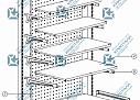 Основные элементы прямого пристенного стеллажа с перфорированными панелями: